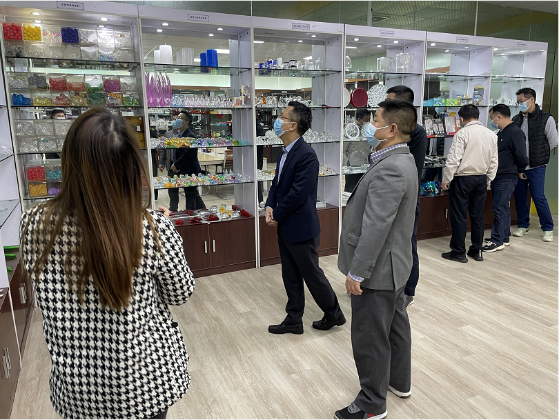 隨后,文總一行前往參觀我司的樣品室。看到琳瑯滿目且精美的亞克力產品,文總高度地贊揚我司的注塑加工能力。