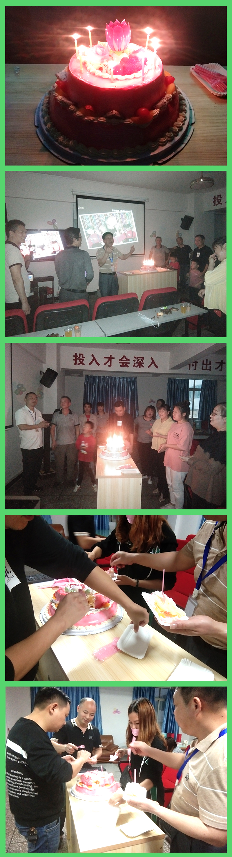 分完蛋糕后,主持人邀請了幾位壽星分享了自己的感悟和愿望。大家齊聚一堂,共同度過了一個精彩難忘的生日,同時所有同事都在心底默默為公司祝福,祝愿我們的注塑加工越做越好!